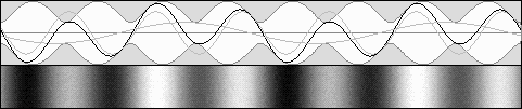 Mr. Ivanov also pointed out that, assuming that electronic waves are responsible for chemical bindings, this behavior obviously explains the Lorentz-FitzGerald contraction. As a matter of fact, Lorentz had shown that such a contraction perfectly explains Michelson's null result, but rigorously on condition that the frequency slows down according to his contraction factor. Most of the time, although it may be generated otherwise, the wavelength difference is caused by the Doppler effect. Unfortunately, Mr. Ivanov only experimented on sound waves, which are undergoing a severe contraction (and also a transverse one) because of the acoustic Doppler effect. The relativistic Doppler effect produces a less severe contraction because the basic frequency is slowing down according to Lorentz's factor. In this case, no transverse contraction occurs any more and this is why our absolute motion with respect to the aether becomes unverifiable. The video below shows that Ivanov's waves are undergoing a less severe contraction if the Doppler effect is relativistic. Standing_Waves_06_Doppler.mkv I am of an opinion that explaining matter contraction was Mr. Ivanov's most significant breakthrough. It definitely sheds some new light on Lorentz's Relativity. The phase wave (see below), which was discovered by Mr. de Broglie many years after Lorentz's 1904 paper, should also improve our comprehension of Lorentz's "local time". 3 – The phase wave. Below, the phase wave is well visible again in the form of regularly spaced black stripes moving toward the right.