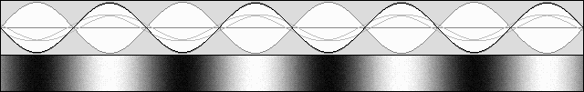 The three animated Gifs below indicate that, if the wavelength differ, the node and antinode envelope is experiencing a contraction. The regular acoustic Doppler shift produces a transverse contraction according to g. The contraction along the displacement axis x is given by g squared. The relativistic Doppler shift produces a less severe contraction according to g on the x axis and there is no transverse contraction. Please note that the animations below are displaying Ivanov's standing waves as seen by an observer moving at the alpha speed. This is why the node and antinode pattern seems to be stationary. However, it is actually moving at the alpha speed with respect to the medium. I had to make this difficult choice years ago because the size of such animated Gifs had to be very small. Unfortunately, this way, the phase wave is no longer displayed correctly.